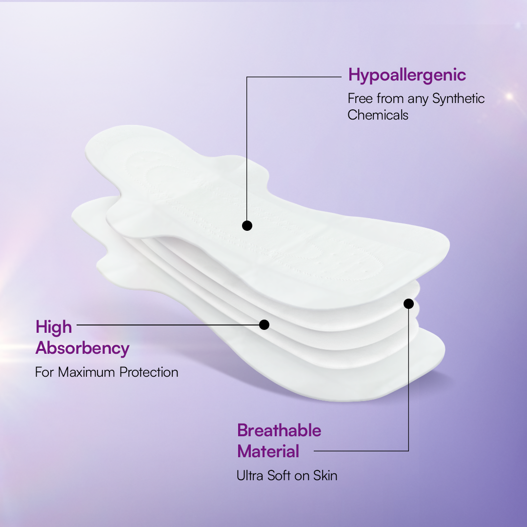 Our 100% Organic Cotton Sanitary Pads are designed to offer unparalleled comfort and protection. Made from the finest organic cotton, these pads are gentle on your skin and highly absorbent, ensuring you stay dry and comfortable throughout the day.
