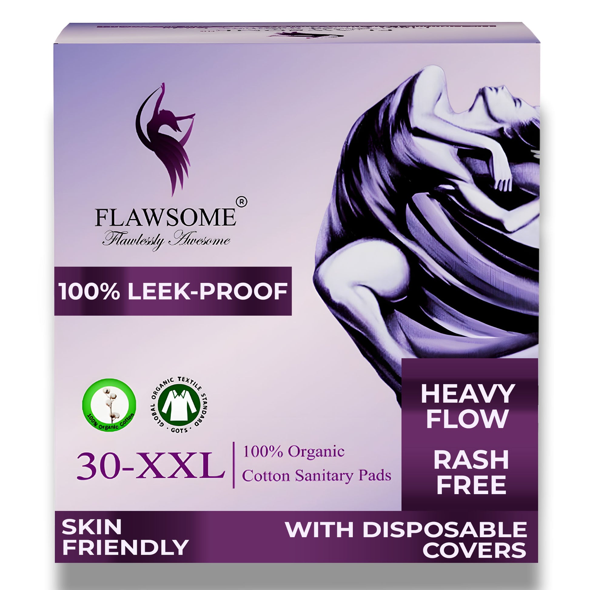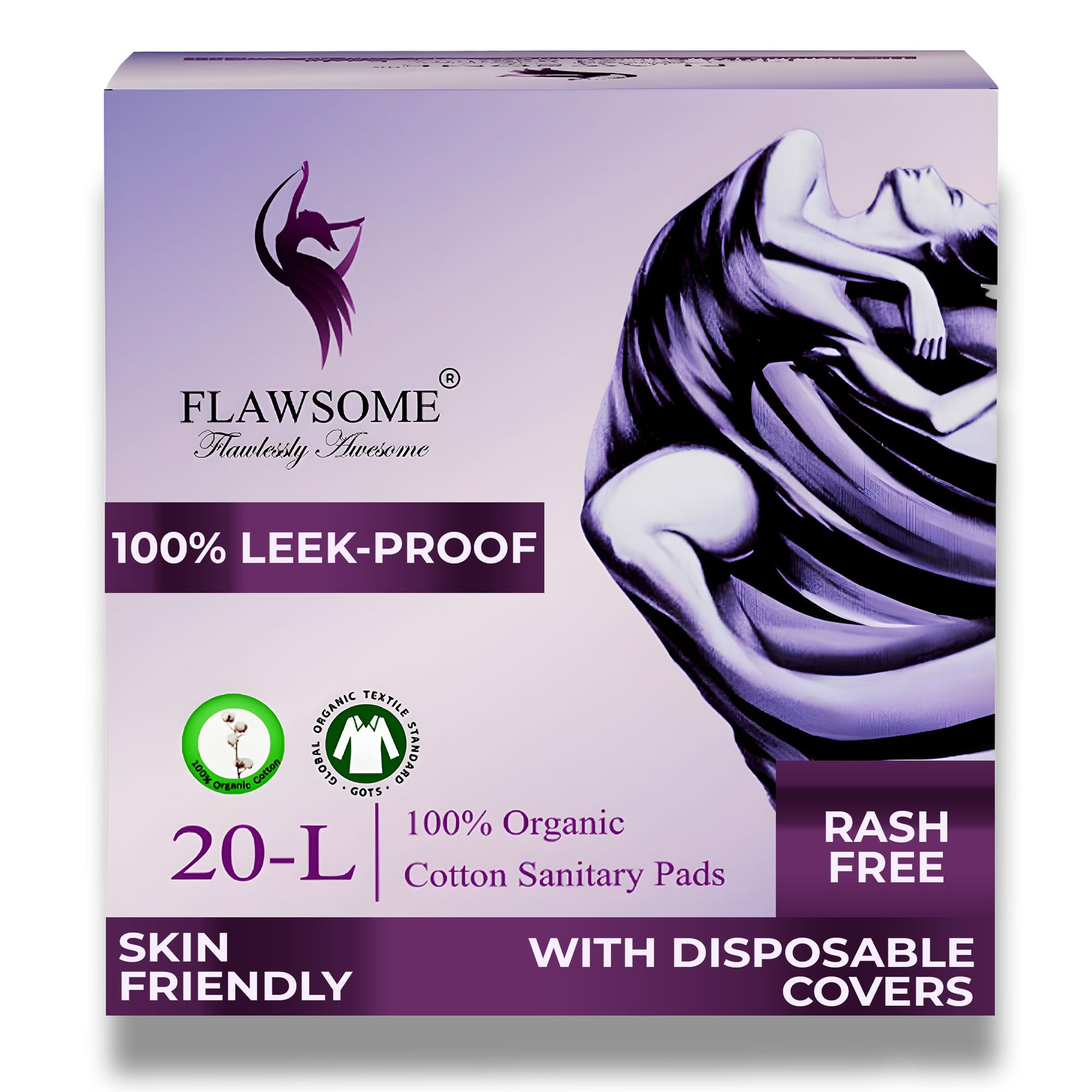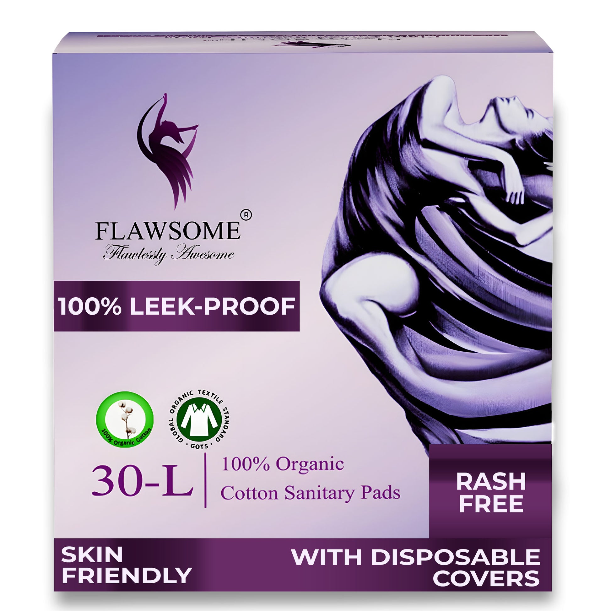 Flawsome - 100% Organic Cotton Sanitary Pads (Pack of 10/20/30)