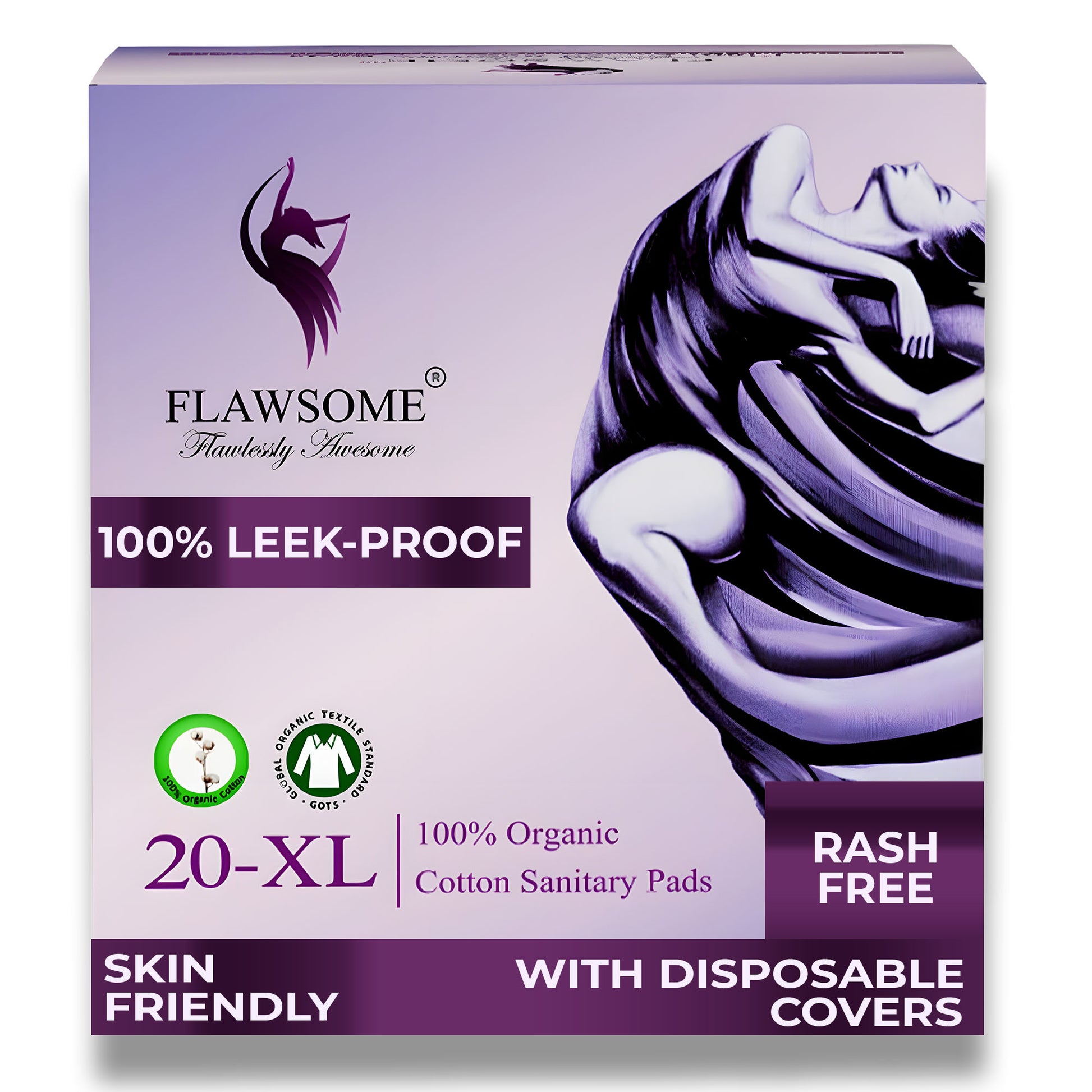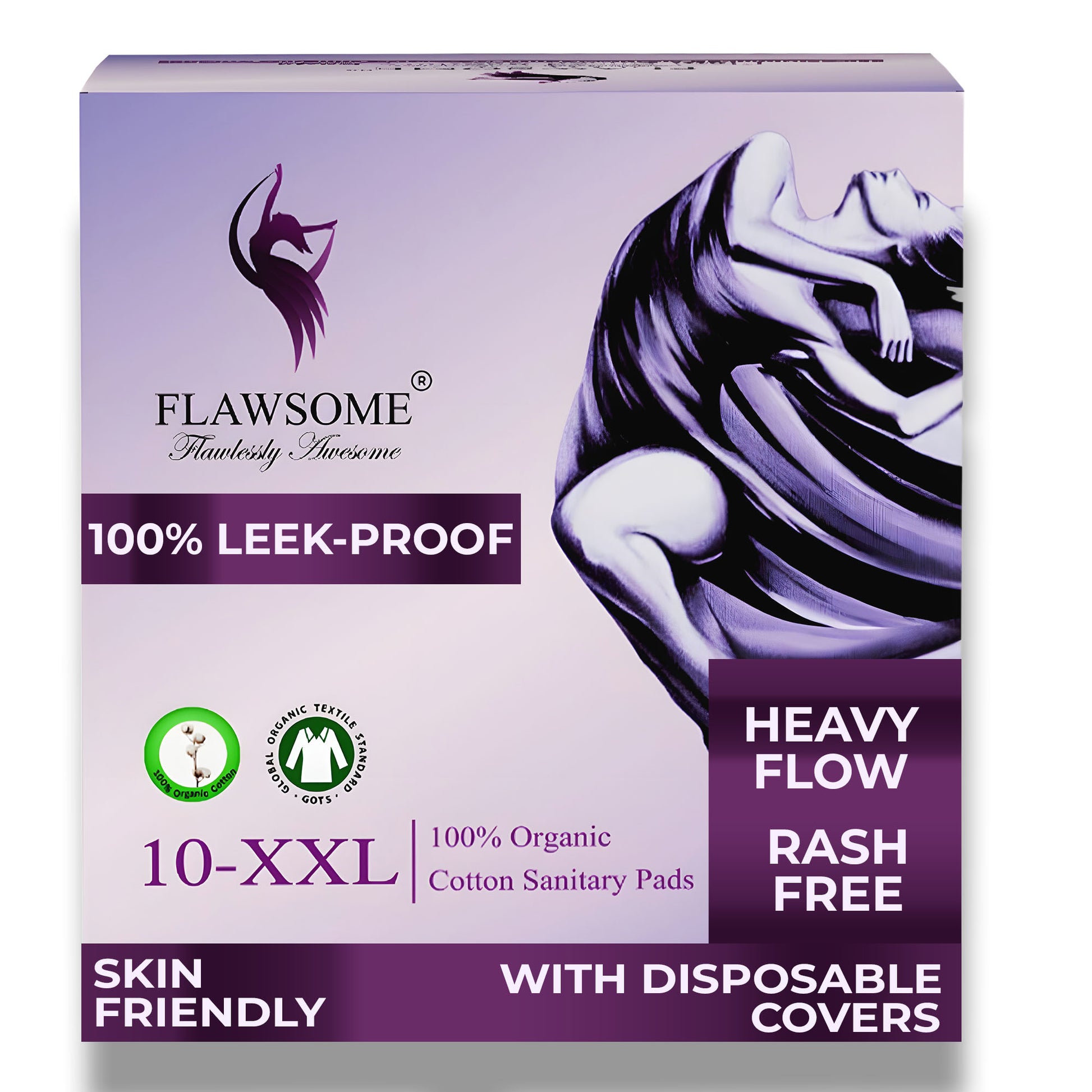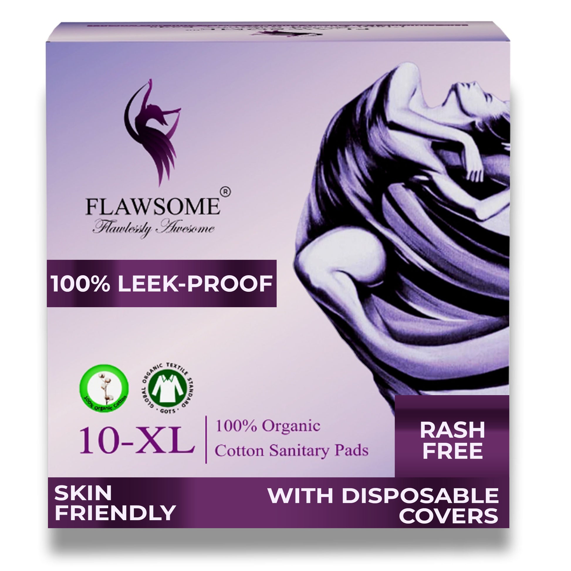 Flawsome - 100% Organic Cotton Sanitary Pads (Pack of 10/20/30)