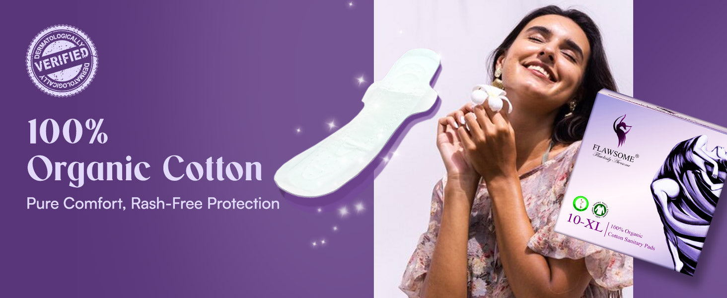 Flawsome 100% Organic Sanitary Pads | High Absorption | Cotton Sanitary Pads | Soft and Rash Free | Toxin-Free (Liner -30 Pads-10, L)