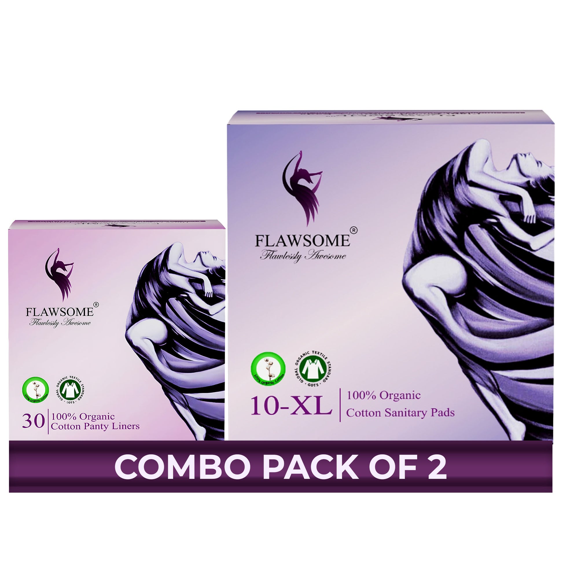 Flawsome 100% Organic Sanitary Pads | High Absorption | Cotton Sanitary Pads | Soft and Rash Free | Toxin-Free (Liner -30 Pads-10, XL)