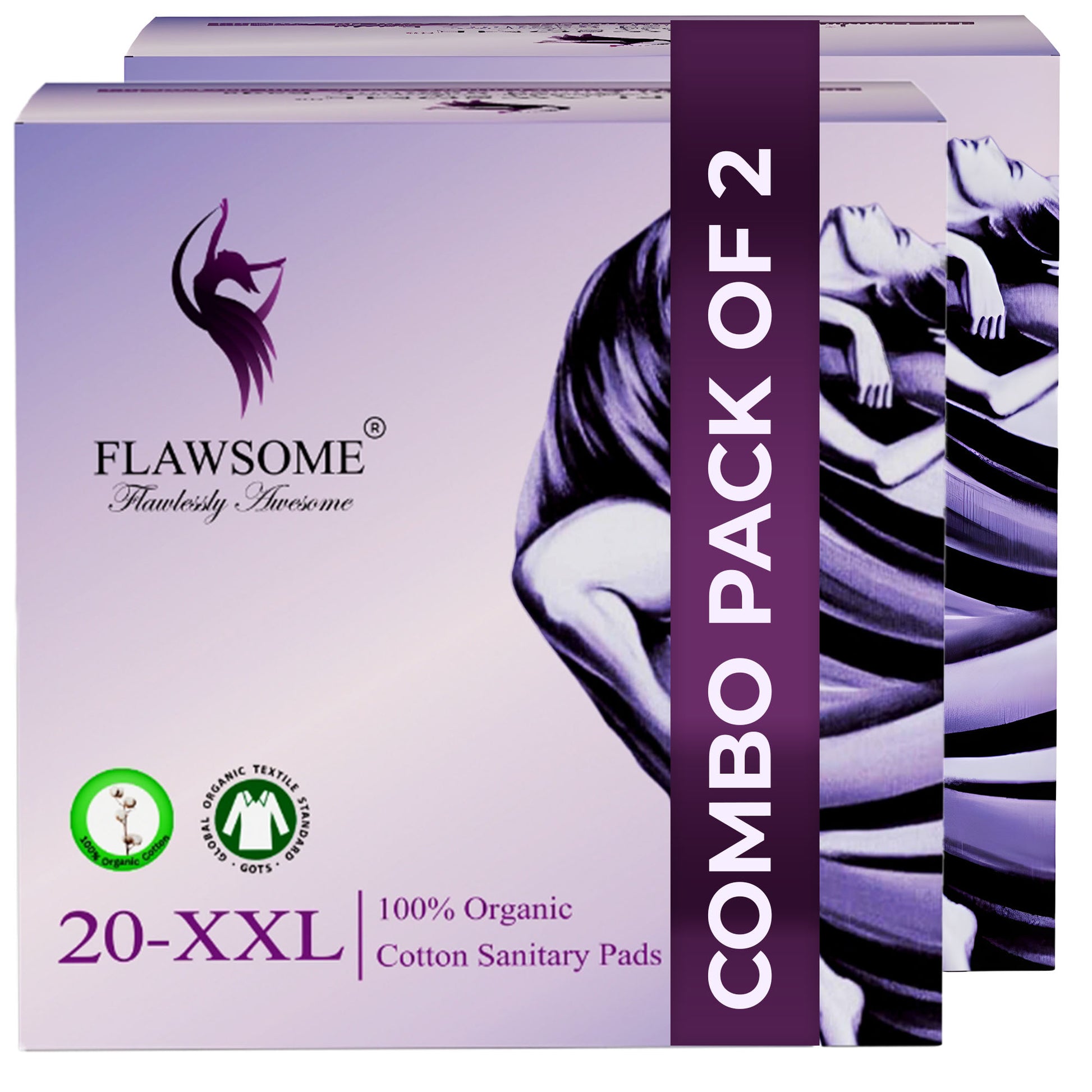 Flawsome 100% Organic Sanitary Pads | High Absorption | Cotton Sanitary Pads | Soft and Rash Free | Toxin-Free (Pack of 40, XXL)