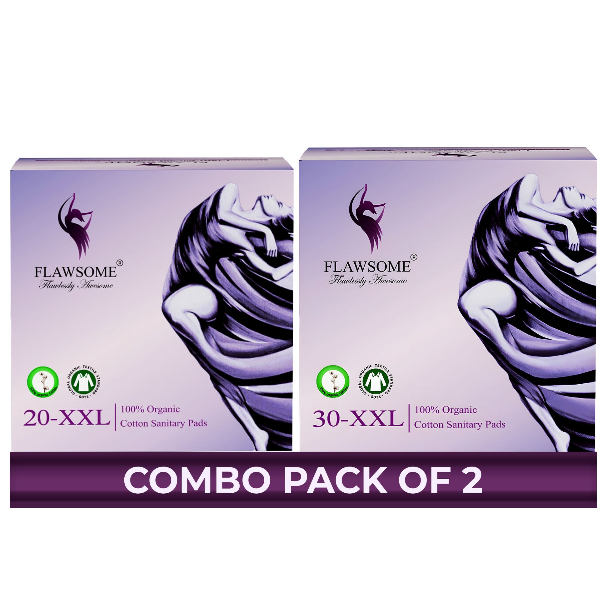 The Flawsome Organic Cotton Sanitary Pads β Size XXL Combo (Pack of 20 + Pack of 30) delivers 50 ultra-thin, super absorbent pads crafted for women who need maximum coverage and leak-proof performance during very heavy flow days and overnight wear.